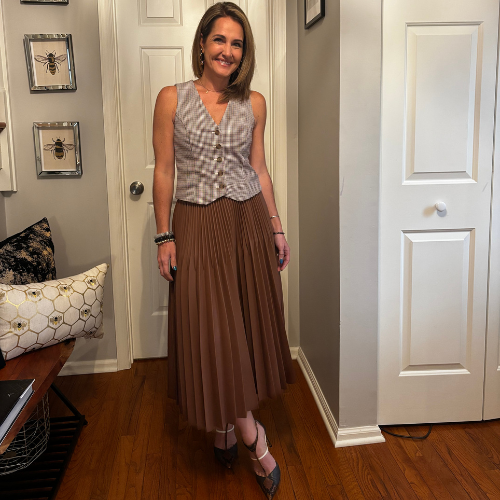 As your Chief Design Officer, lover of all things fashion, and stylist at heart, it’s about time we dig into a little seasonal style. Throughout October, I’ve been absolutely loving my sleeveless vests. Truth be told, I’m a summer girly at heart—the type who would happily live at the beach all year long if I could. The transition to fall—the crisp leaves, the pumpkin spice, the sudden need for layers—hasn’t always been my favorite. My cooler weather wardrobe usually stays tucked away as long as possible (for the record, I still haven’t broken out my boots!).